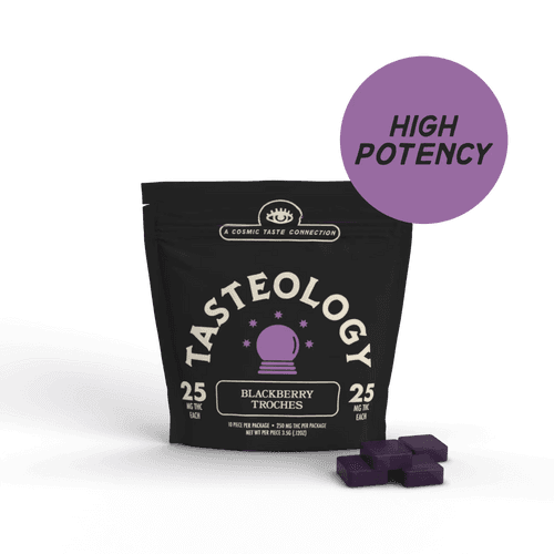 Tasteology’s Blackberry Troches deliver a bold, fruit-driven experience with the smooth sophistication their name promises. Each troche melts gently in the mouth, unfolding into deep berry richness layered with subtle notes of wild plum and a whisper of earthiness. It’s a flavor that feels ripe, concentrated, and undeniably grown-up—no artificial flash, just grounded indulgence. Designed for sublingual absorption, these troches offer a steady, controlled onset that supports intentional, moment-by-moment experiences. Whether easing into the evening or curating a creative mindset, the format invites patience—rewarding the slow dissolve with a balanced, thoughtfully composed effect. Tasteology approaches cannabis as a craft, not a commodity, and the Blackberry Troche exemplifies that ethos. From texture to taste to effect, every element is dialed in to reflect their culinary-inspired philosophy: cannabis you can savor, with a flavor you won’t forget. Ideal for consumers seeking a refined alternative to traditional edibles, Blackberry Troches fit neatly into a lifestyle that values clarity, consistency, and flavor with purpose. It’s not just about taste—it’s about the experience that follows. Individual Results May Vary.