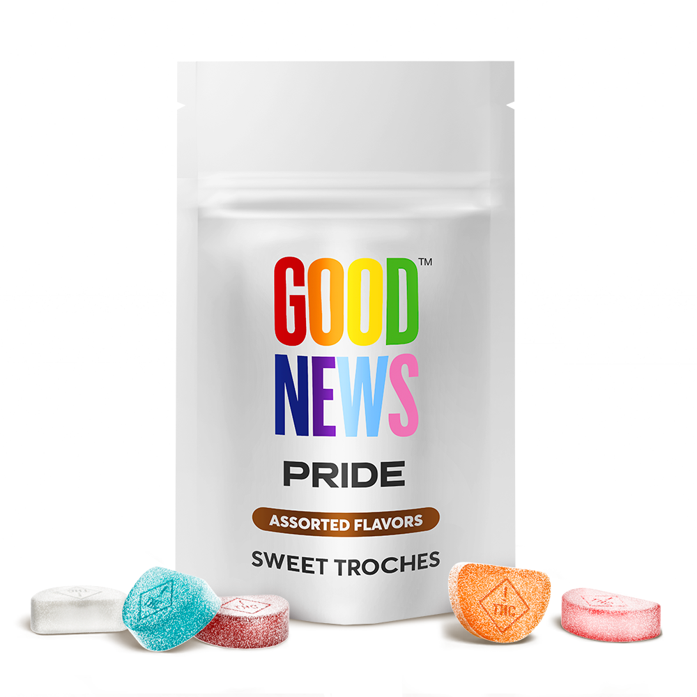 Good News Assorted Flavors Sweet Troches are a flavor-packed sampler built for flexibility, fun, and feel-good moments on your terms. Each troche delivers a smooth-dissolving experience in a rotating mix of vibrant fruit flavors—from juicy berry to citrus-bright orange and refreshing watermelon. Every piece is a surprise, offering a playful pop of sweetness that melts beneath the tongue and sets the tone without overpowering it. The sublingual format keeps things discreet and easy to manage, with effects that unfold gradually for a more tailored, low-profile experience. Whether you're easing into the evening, riding a creative wave, or just adding a little spark to your routine, these assorted troches offer a flexible option that fits right in. No chewing, no waiting around—just smooth flavor and steady vibes you can count on. Part of Good News’ lineup of approachable cannabis essentials, this variety pack makes it simple to enjoy your favorite format with more ways to savor the moment. Because sometimes, the best part of your day starts with a little sweet surprise. Individual Results May Vary.