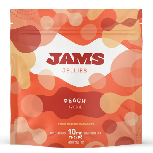 Peach with punch—that’s the JAMS promise. These Hybrid Peach Jellies hit the sweet spot between mellow vibes and mouthwatering flavor, offering a juicy fusion that tastes like a sun-ripened orchard in overdrive. The texture is tender yet firm, with a slow chew that releases layers of bold stone fruit flavor touched by a whisper of candy-shop nostalgia. Infused with a balanced hybrid profile, each jelly is crafted for those moments that call for elevation without excess. Whether you're vibing with friends, diving into a creative zone, or unwinding with intention, the experience walks the line between focus and float. It’s smooth, steady, and laced with that signature JAMS rhythm—unexpected yet entirely in tune. Known for turning up the volume on flavor and individuality, JAMS leans into bold expressions without compromise. These jellies don’t whisper—they sing, blending sweet peach brightness with a subtle herbal undercurrent that keeps things grounded. As part of the JAMS lineup, Hybrid Peach Jellies embody the brand’s playful spirit and modern edge. They're made for those who want a louder kind of calm—no apologies, no shortcuts, just pure peach-forward expression. Individual Results May Vary.