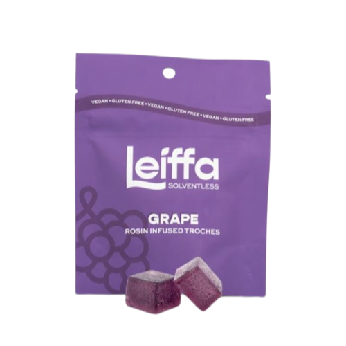 Live Rosin Grape Troches by Leiffa bring a rich, fruit-forward experience to the forefront—layering deep grape notes with a whisper of botanical depth. Each troche delivers a smooth burst of juicy, grape jam flavor that’s both familiar and refined, calling to mind late-harvest fruit and lush vineyard ripeness. Infused with solventless live rosin, these troches offer more than just taste. The infusion highlights the full spectrum of the plant, adding subtle earthy undertones that round out the grape’s natural sweetness. Designed to dissolve gradually, the texture supports a slow-unfolding flavor experience while offering discretion and ease of use. Part of Leiffa’s thoughtfully curated lineup, these Grape Troches reflect a commitment to flavor integrity, clean formulation, and user-friendly formats. Whether you're easing into an end-of-day ritual or enhancing a quiet moment, this fruit-forward option is a polished addition to any routine. Individual Results May Vary.