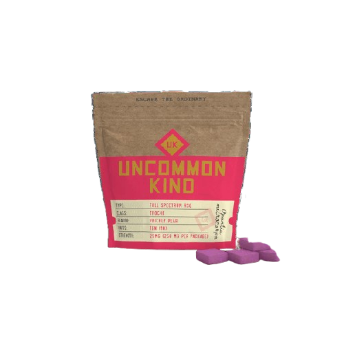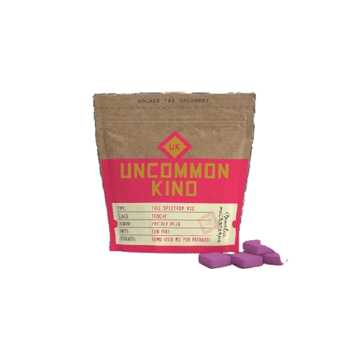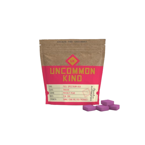 Uncommon Kind redefines the edible experience with their RSO Prickly Pear Troches—a discreet, flavor-forward format designed for thoughtful consumption and refined taste. Each troche melts slowly, releasing a subtly sweet, desert-inspired essence that lands somewhere between a ripe cactus fruit and a sun-warmed orchard. The prickly pear flavor isn’t just unique—it’s transportive, conjuring imagery of sunset horizons and still desert air. Infused with RSO (Rick Simpson Oil), these troches embody Uncommon Kind’s dedication to whole-plant integrity and nuanced effect. They unfold gradually, delivering a depth of experience that encourages presence and calm. Unlike traditional edibles, the troche format invites a more deliberate ritual—placed between cheek and gum, it dissolves quietly, with each moment steeped in flavor and intention. This product fits seamlessly within Uncommon Kind’s ethos: unconventional, plant-forward, and elevated by design. The brand caters to those seeking something off the beaten path—consumers who prefer sensory richness and emotional resonance over flash and excess. Ideal for winding down or tapping into a more reflective headspace, RSO Prickly Pear Troches offer a gentle journey built on craftsmanship, not convenience. With a taste as rare as its namesake and a format tailored for subtlety, this is a choice for those who savor slow moments. Individual Results May Vary.